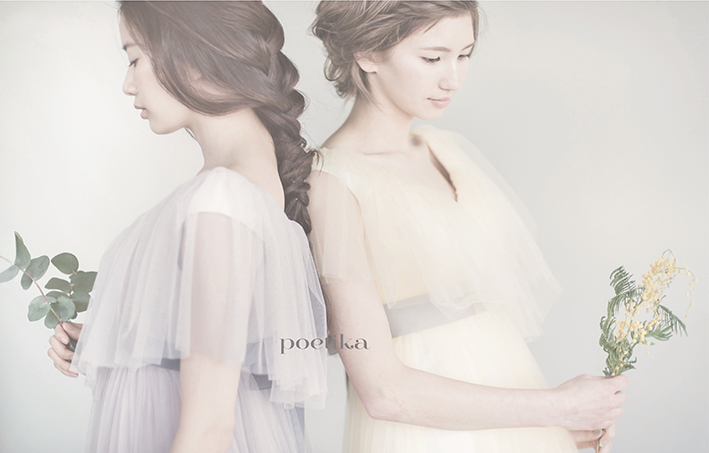 欧州のドレスアトリエを一軒ずつ回り、インポートドレスをセレクトして取り揃えるブランド。 “ポエティカ”という名前は詩のように趣のあるドレスを美しい花嫁へという想いから。“ドレスが主役にならず、着る人の美しさが際立つこと”をモットーにしたシンプルで上質、透明感あふれるドレスは“大切なひととき” をいつも以上に私らしくいるためのもの。