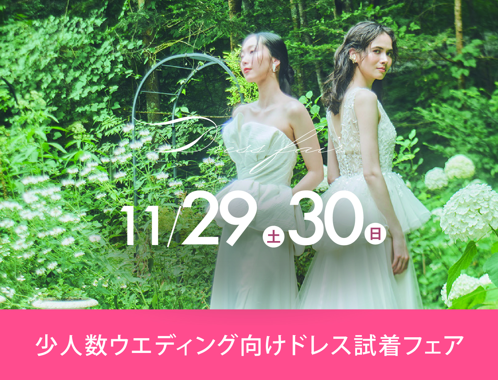 少人数ウエディング向けドレス試着フェア開催!詳細を見る