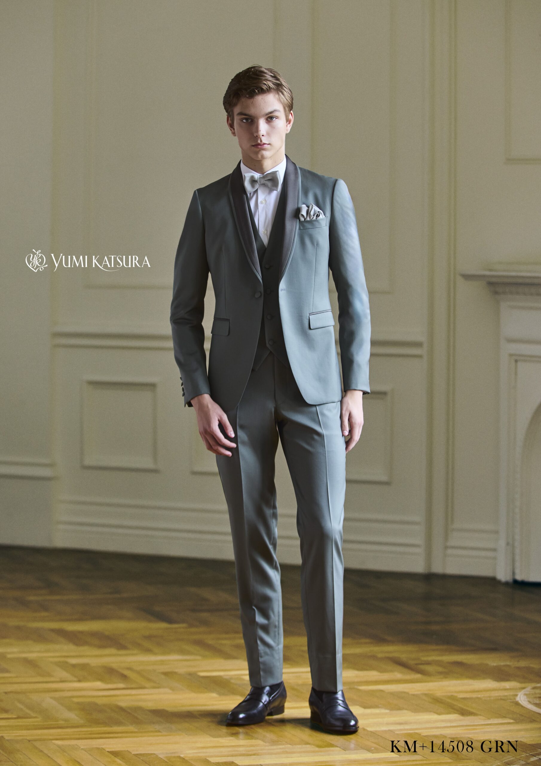 今のカジュアルテイストをエレガントに表現したショールカラーのスレンダースーツ。